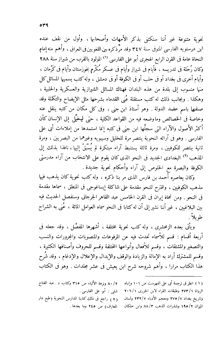 (¬1) انظر فى ترجمة أبى على الفهرست ص 101 وإنباه الرواة 1/ 273 وطبقات القراء لابن الجزرى 1/ 206 وتاريخ بغداد 7/ 275 ومعجم الأدباء 7/ 232 ولسان الميزان 2/ 195 وشذرات الذهب 3/ 88 وابن خلكان 2/ 80 ونزهة الألباء ص 315 وكتاب د. عبد الفتاح شلبى: أبو على الفارسى.
