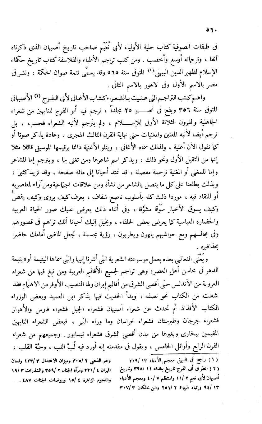 فى طبقات الصوفية كتاب حلية الأولياء لأبى نعيم صاحب تاريخ أصبهان الذى ذكرناه آنفا، وترجمانه أوسع وأخصب. ومن كتب تراجم الأطباء والفلاسفة كتاب تاريخ حكماء الإسلام لظهير الدين البيهقى (¬1) المتوفى سنة 565 وقد يسمّى تتمة صوان الحكمة، ونشر فى مصر بالاسم الأول وفى لاهور بالاسم الثانى.