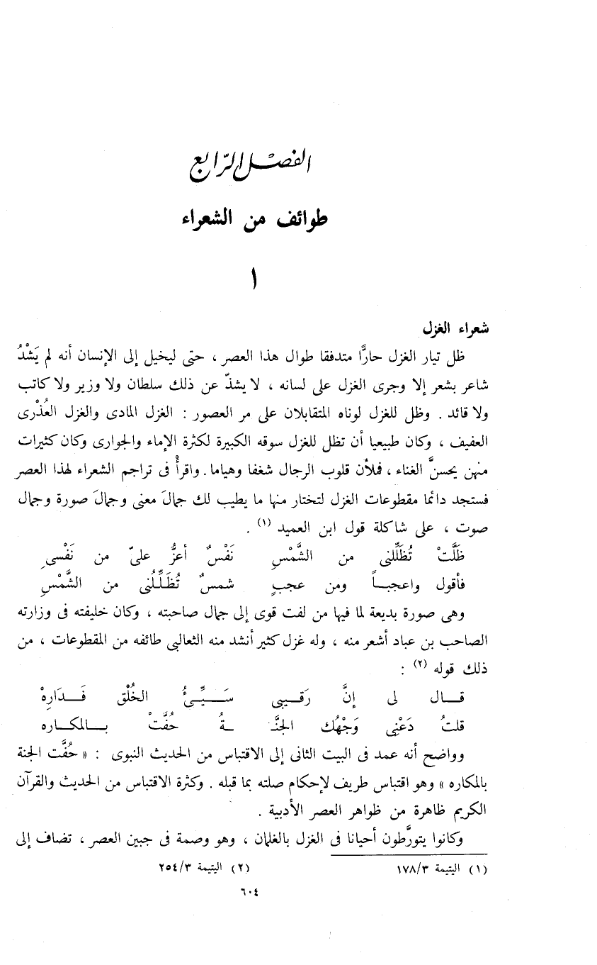 وهى صورة بديعة لما فيها من لفت قوى إلى جمال صاحبته، وكان خليفته فى وزارته الصاحب بن عباد أشعر منه، وله غزل كثير أنشد منه الثعالبى طائفة من المقطوعات، من ذلك قوله (¬2):
