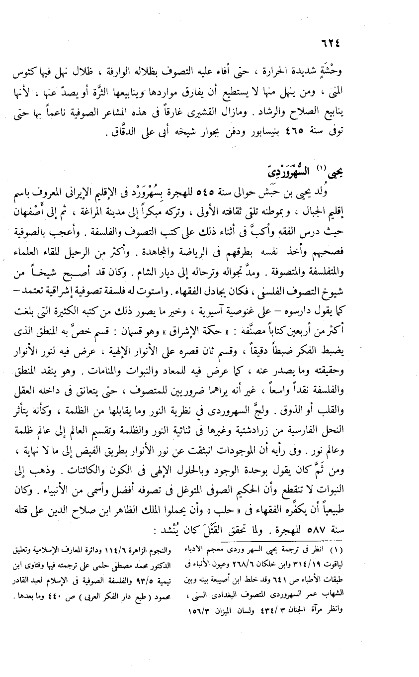 (¬1) انظر فى ترجمة يحيى السهروردى معجم الأدباء لياقوت 19/ 314 وابن خلكان 6/ 268 وعيون الأنباء فى طبقات الأطباء ص 641 وقد خلط ابن أصيبعة بينه وبين الشهاب عمر السهروردى المتصوف البغدادى السنى، وانظر مرآة الجنان 3/ 434 ولسان الميزان 3/ 156 والنجوم الزاهرة 6/ 114 ودائرة المعارف الإسلامية وتعليق الدكتور محمد مصطفى حلمى على ترجمته فيها وفتاوى ابن تيمية 5/ 93 والفلسفة الصوفية فى الإسلام لعبد القادر محمود (طبع دار الفكر العربى) ص 440 وما بعدها.