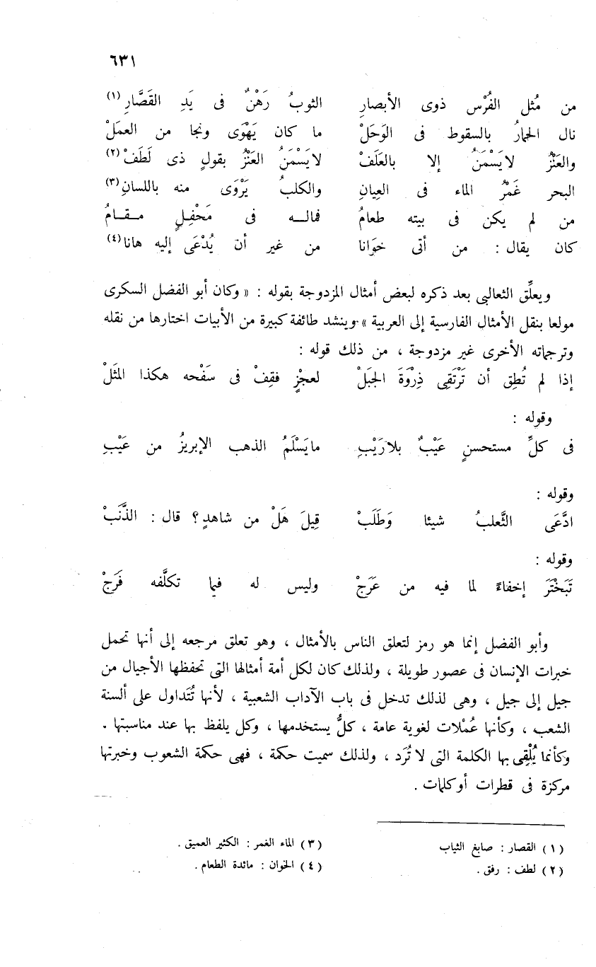 وأبو الفضل إنما هو رمز لتعلق الناس بالأمثال، وهو تعلق مرجعه إلى أنها تحمل خبرات الإنسان فى عصور طويلة، ولذلك كان لكل أمة أمثالها التى تحفظها الأجيال من جيل إلى جيل، وهى لذلك تدخل فى باب الآداب الشعبية، لأنها تتداول على ألسنة الشعب، وكأنها عملات لغوية عامة، كلّ يستخدمها، وكل يلفظ بها عند مناسبتها، وكأنما يلقى بها الكلمة التى لا ترد، ولذلك سميت حكمة، فهى حكمة الشعوب وخبرتها مركزة فى قطرات أو كلمات.