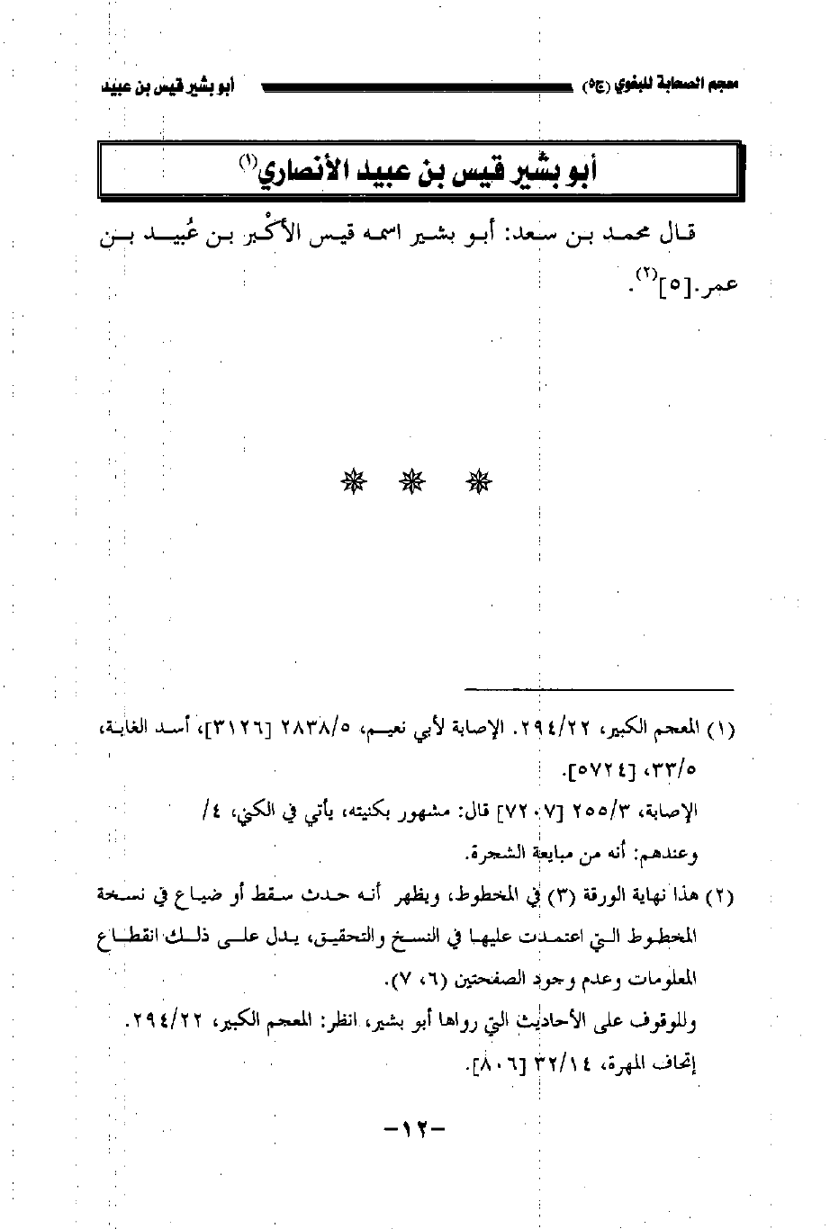 قال محمد بن سعد: أبو بشير اسمه قيس الأكبر بن عبيد بن عمر.