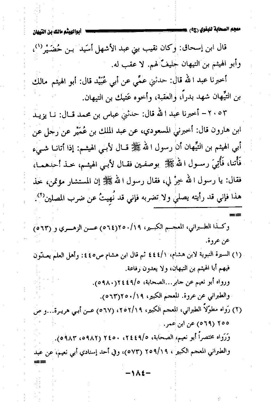 أخبرنا عبد الله قال: حدثني عمي عن أبي عبيد قال: أبو الهيثم مالك بن التيهان شهد بدرا والعقبة وأخوه عتيك بن التيهان.