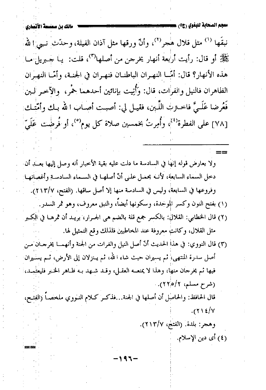 الأنهار؟ قال: أما النهران الباطنان فنهران في الجنة وأما النهران الظاهران فالنيل والفرات قال: وأتيت بإنائين أحدهما خمر والآخر لبن فعرضا علي فاخترت اللبن فقيل لي: أصبت أصاب الله بك وأمتك //٧٨//على الفطرة وأمرت بخمسين صلاة كل يوم أو فرضت علي