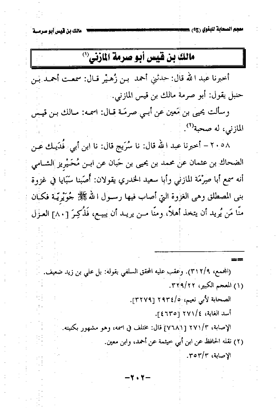 أخبرنا عبد الله قال حدثني أحمد بن زهير قال: سمعت أحمد بن حنبل يقول: أبو صرمة مالك بن قيس المازني.
