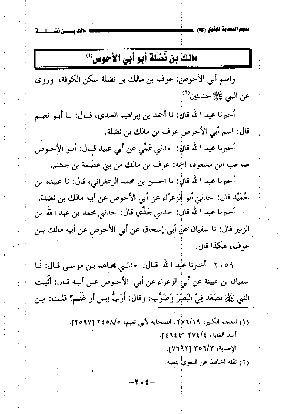 أخبرنا عبد الله قال: نا الحسن بن محمد الزعفراني قال نا عبيدة بن حميد قال: حدثني أبو الزعراء عن أبي الأحوص عن أبيه مالك بن نضلة.