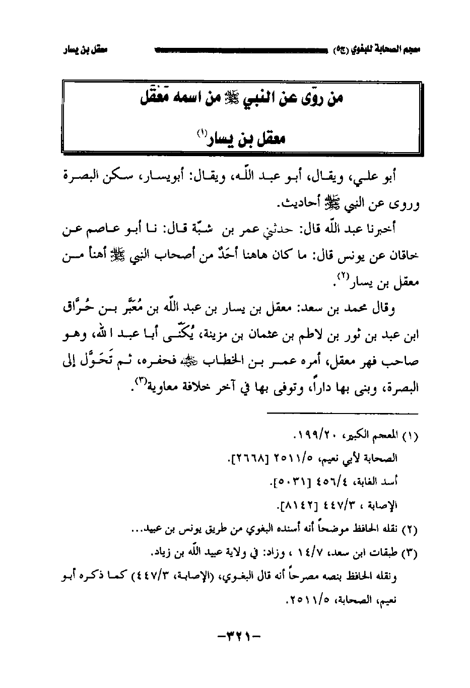 أخبرنا عبد الله قال: حدثني عمر بن شبة قال: حدثنا رأبو عاصم عن خاقان عن يونس قال ما كان هاهنا أحد من أصحاب النبي صلى الله عليه وسلم أهنأ من معقل بن يسار.