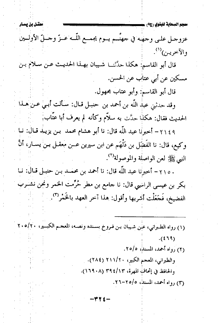 ٢١٥٠ - أخبرنا عبد الله قال: حدثنا أحمد بن محمد بن حنبل قال: حدثنا بكر بن عيسى الراسبي قال: حدثنا جامع بن مطر: حرمت الخمر ونحن نشرب الفضيخ فجعلت أشربها وأقول هذا آخر العهد بالخمر.