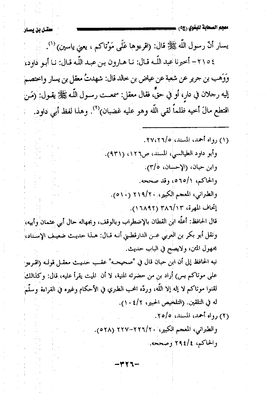 يسار أن رسول الله صلى الله عليه وسلم قال: اقرءوها على موتاكم يعني ياسين.