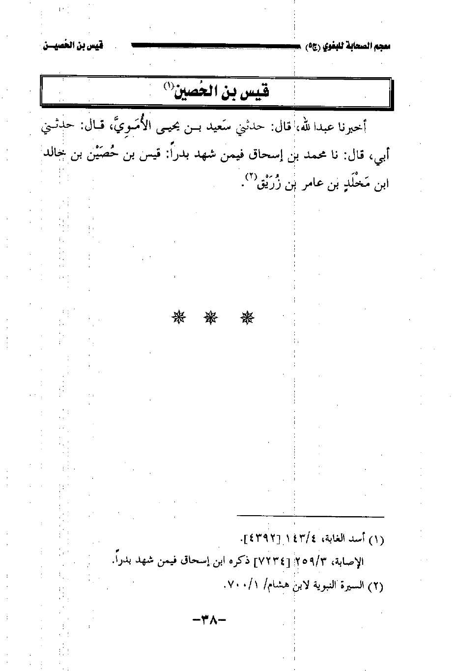 أخبرنا عبد الله قال حدثني سعيد بن يحيى الأموي قال حدثني أبي قال نا محمد بن إسحاق فيمن شهد بدرا: قيس بن حصين بن خالد بن مخلد بن عامر بن زريق.