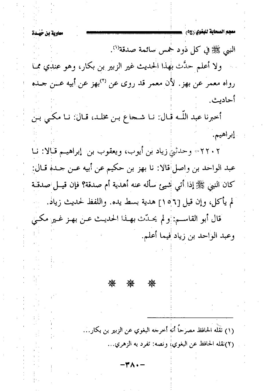 ٢٢٠٢ - وحدثني زياد بن أيوب ويعقوب بن إبراهيم قالا حدثنا عبد الواحد بن واصل قالا حدثنا بهز بن حكيم عن أبيه , عن جده قال كان النبي صلى الله عليه وسلم إذا اتى شيء سأله عنه أهدية أم صدقة فإن قيل صدقة لم يأكل وإن قيل //١٥٦//هدية بسط يده.