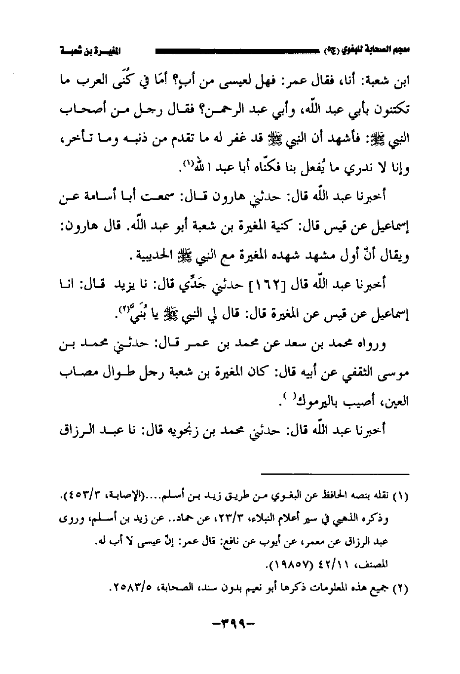 أخبرنا عبد الله قال: حدثني هارون قال: سمعت أبا أسامة عن إسماعيل بن قيس قال كنية المغيرة بن شعبة أبو عبد الله قال هارون ويقال أن أول مشهد شهده المغيرة مع النبي صلى الله عليه وسلم الحديبية.