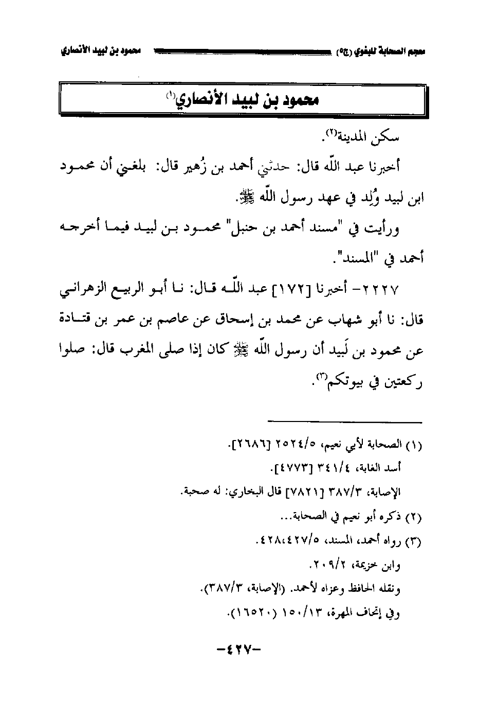 ورأيت في مسند أحمد بن حنبل محمودبن لبيد فيما أخرجه أحمد في المسند.