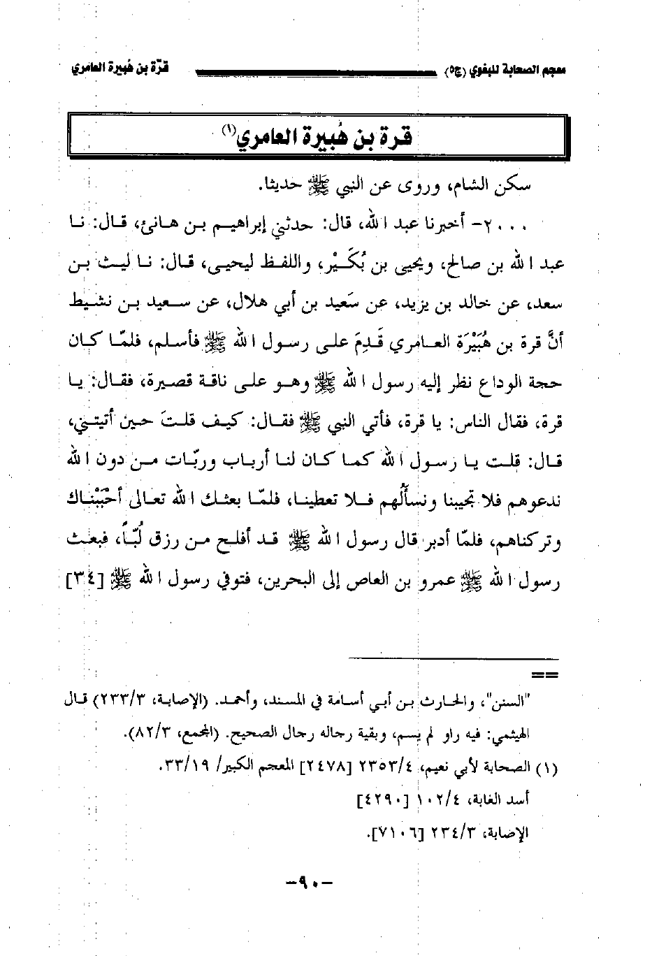 ٢٠٠٠ - أخبرنا عبد الله قال حدثني إبراهيم بن هانىء قال نا عبد الله بن صالح ويحيى بن بكير واللفظ ليحيى قال نا ليث بن سعد عن خالد بن يزيد عن سعيد بن أبي هلال عن سعيد بن نشيط أن قرة بن هبيرة العامري قدم على رسول الله صلى الله عليه وسلم فأسلم فلما كان حجة الوداع نظر إليه رسول الله صلى الله عليه وسلم وهو على ناقة قصيرة فقال: يا قرة فقال الناس: يا قرة فأتى النبي صلى الله عليه وسلم فقال: كيف قلت حين أتيتني قال: قلت يا رسول الله كما كان لنا أرباب وربات من دون الله ندعوهم فلا تجيبنا ونسألهم فلا تعطينا فلما بعثك الله تعالى أحببناك وتركناهم فلما أدبر قال رسول الله صلى الله عليه وسلم قد أفلح من رزق لُبَّا فبعث رسول الله صلى الله عليه وسلم عمرو بن العاص إلى البحرين فتوفي رسول الله صلى الله عليه وسلم //٣٤//