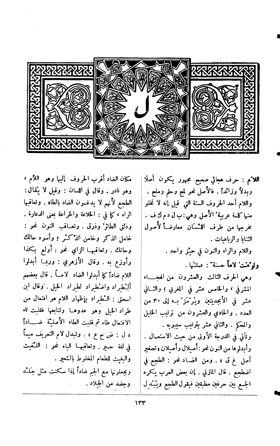 اللام: حرف هجائي صحيح مجهور يكون أصلًا وبدلًا وزائدًا. فالأصل نحو لمح وحلم وملح. واللام أحد الحروف الستة التي قيل إنه لا تخلو منها كلمة عربية الأصل وهي: ب ل د م ك ف. مخرجها من طرف اللسان معارضًا لأصول الثنايا والرباعيات.
