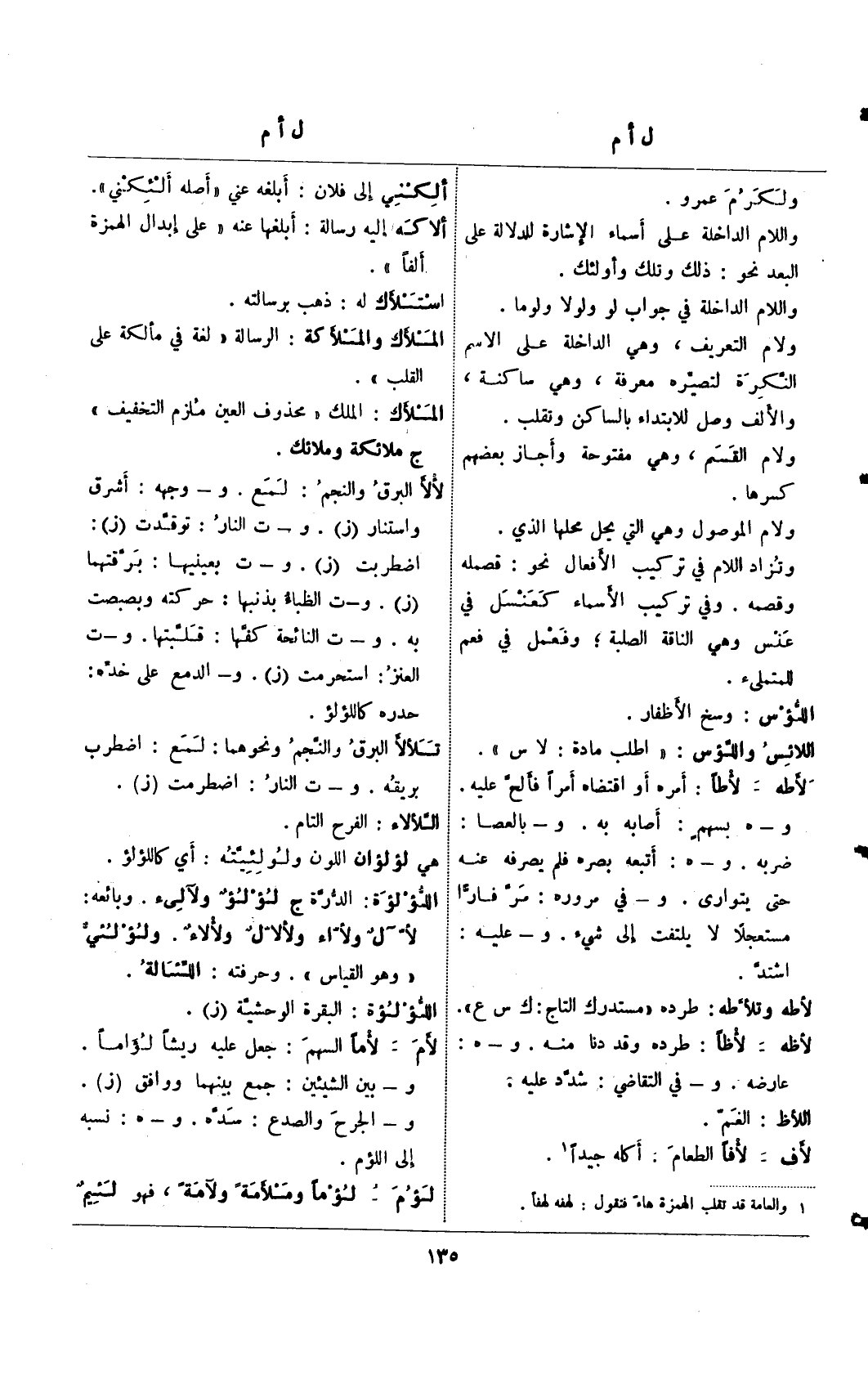 لأم- لأمًا السهم: جعل عليه ريشًا لؤاماَ. و- بين الشيئين: جمع بينهما ووافق (ز). و- الجرح والصدع: سده. و- هـ: نسبه إلي اللؤم.