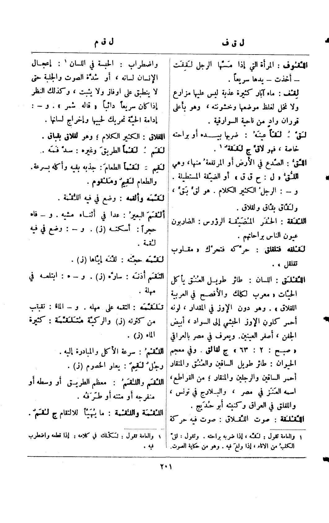 لق- لقًا عينه: ضربها بيده أو براحته خاصة، فهو لاق ج لققه (¬1).