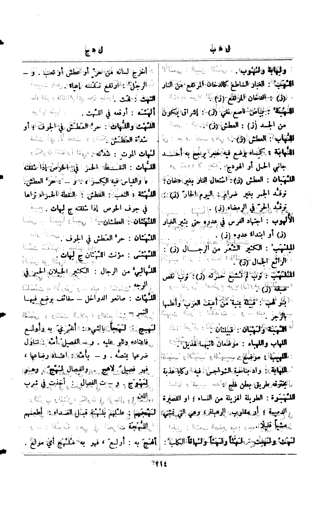 اللهبة: بياض ناصع نقي (ز): إشراق يكون من الجسد (ز): العطش (ز).