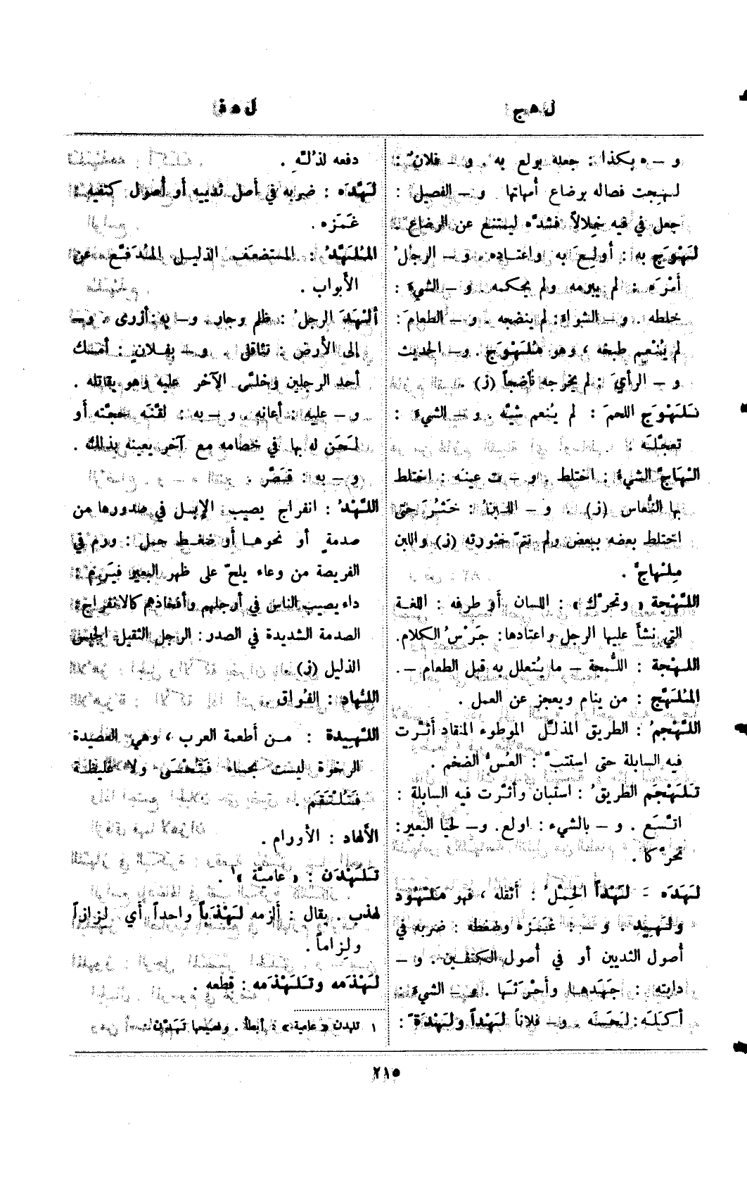 تلهجم الطريق: استبان وأثرت فيه السابلة: اتسع. و- بالشئ: اولع. و- لحيا البعير: تحركا.