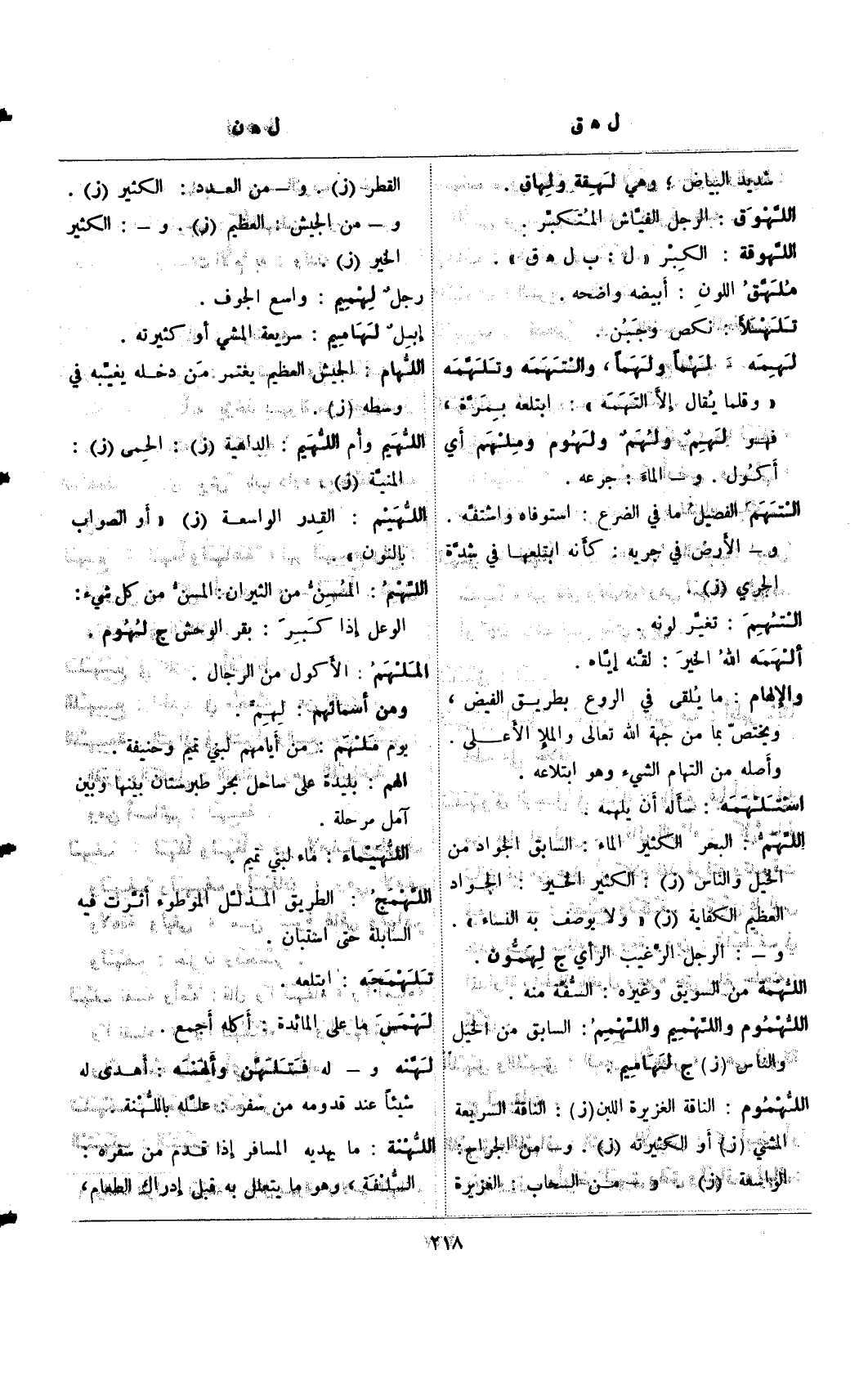 اللهم: البحر الكثير الماء: السابق الجواد من الخيل والناس (ز): الكثير الخير: الجواد العظيم الكفاية (ز) "ولا يوصف به النساء".