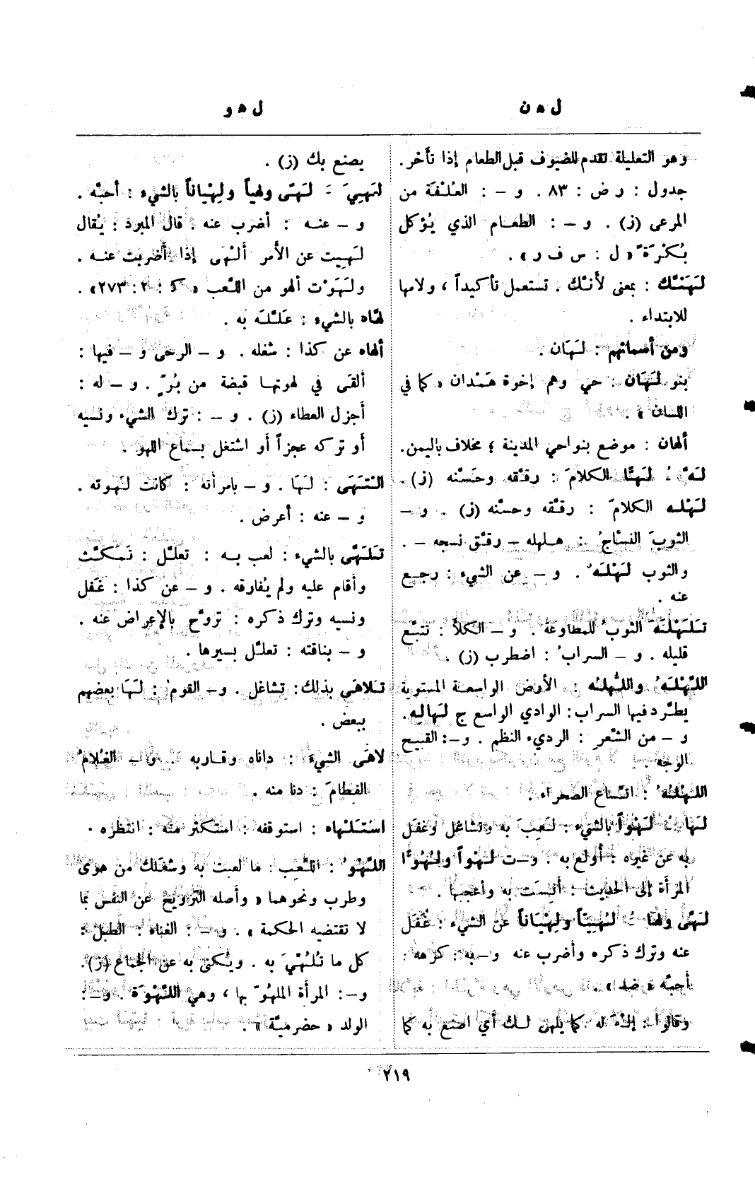 و- عنه: أضرب عنه. قال المبرد: يقال لهيت عن الأمر ألهي إذا أضربت عنه.