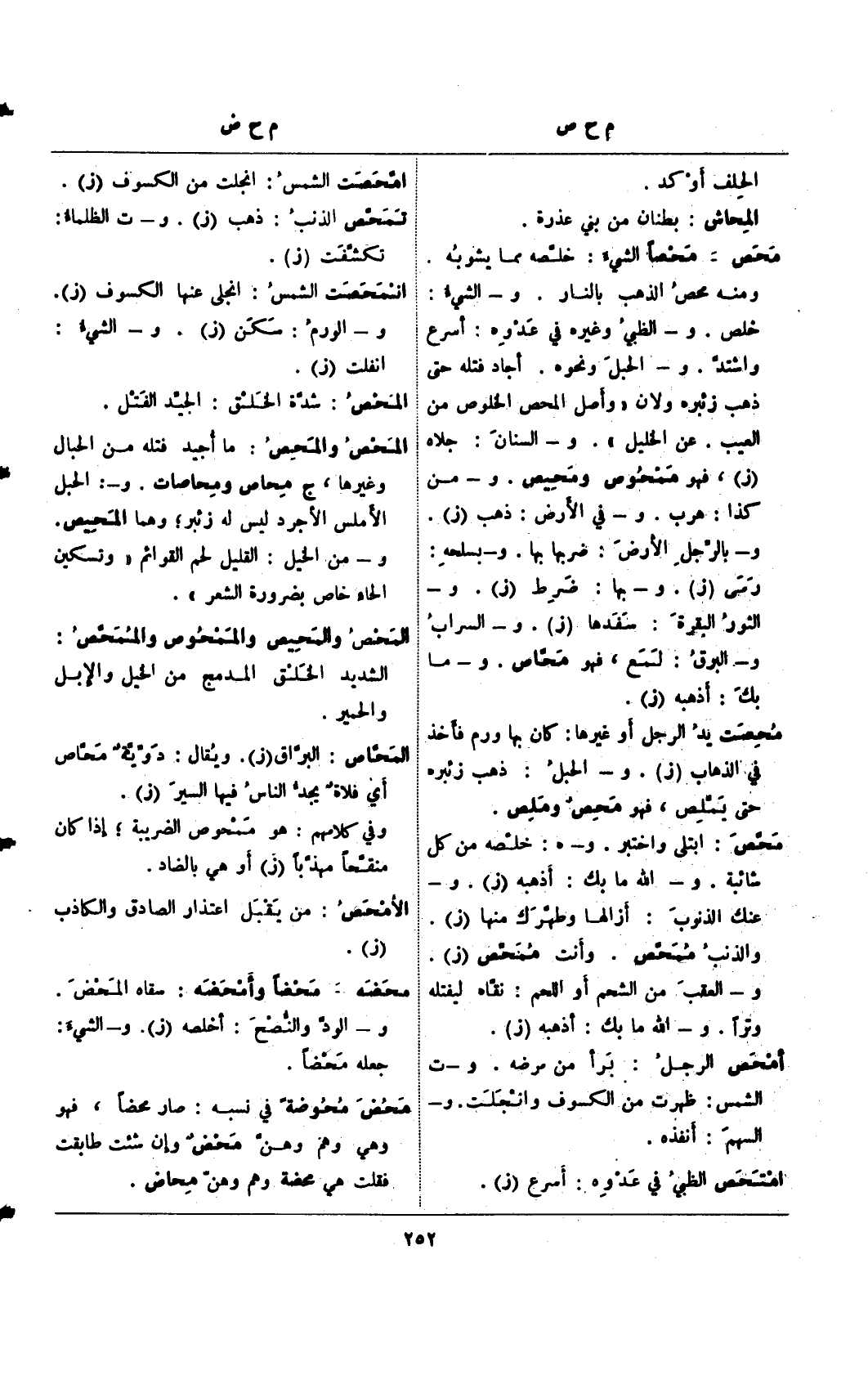 تمحص الذنب: ذهب (ز). و- ت الظلماء: تكشفت (ز).