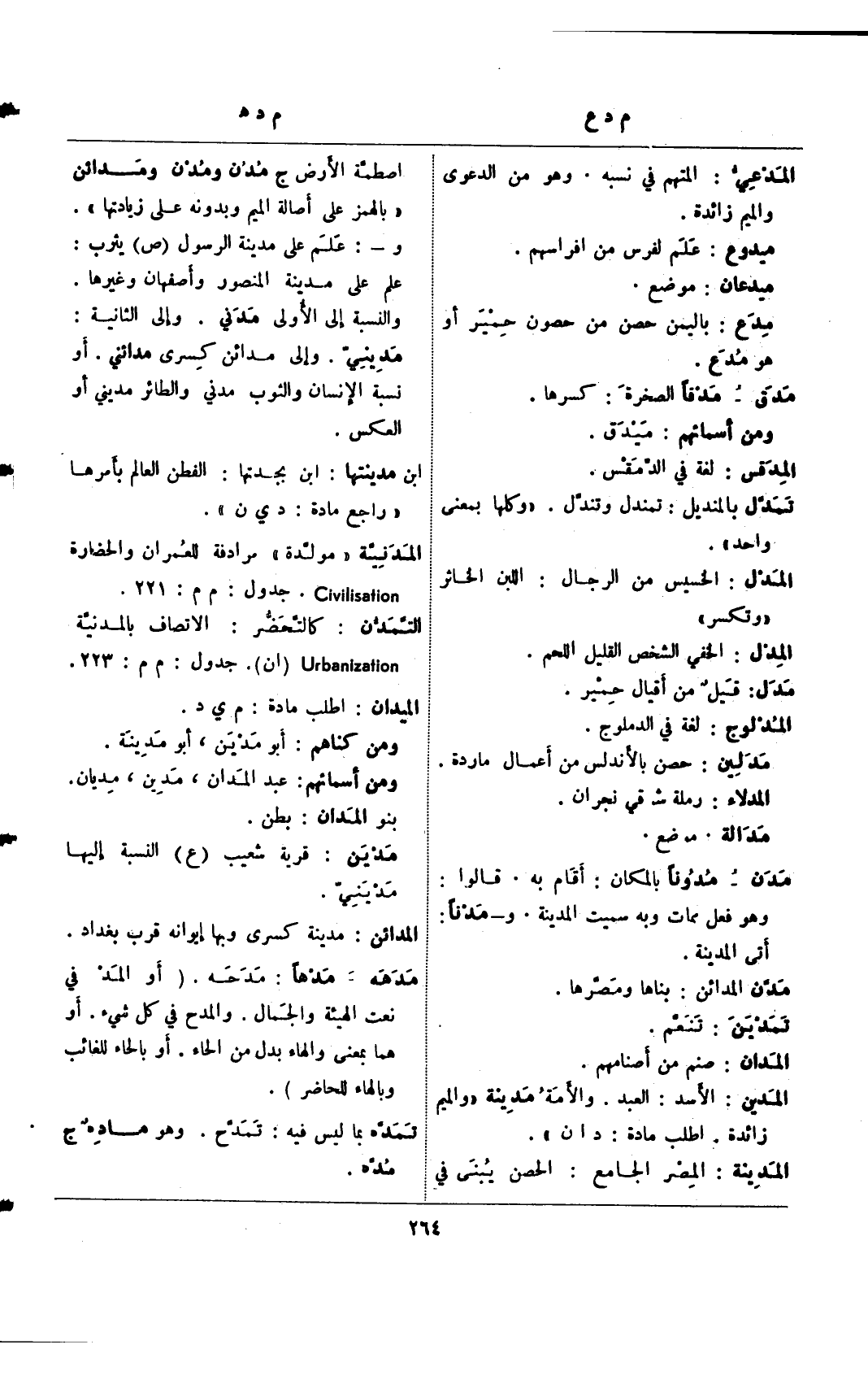 المدنية "مولدة" مرادفة للعمران والحضارة Civilization. جدول: م م: 221.