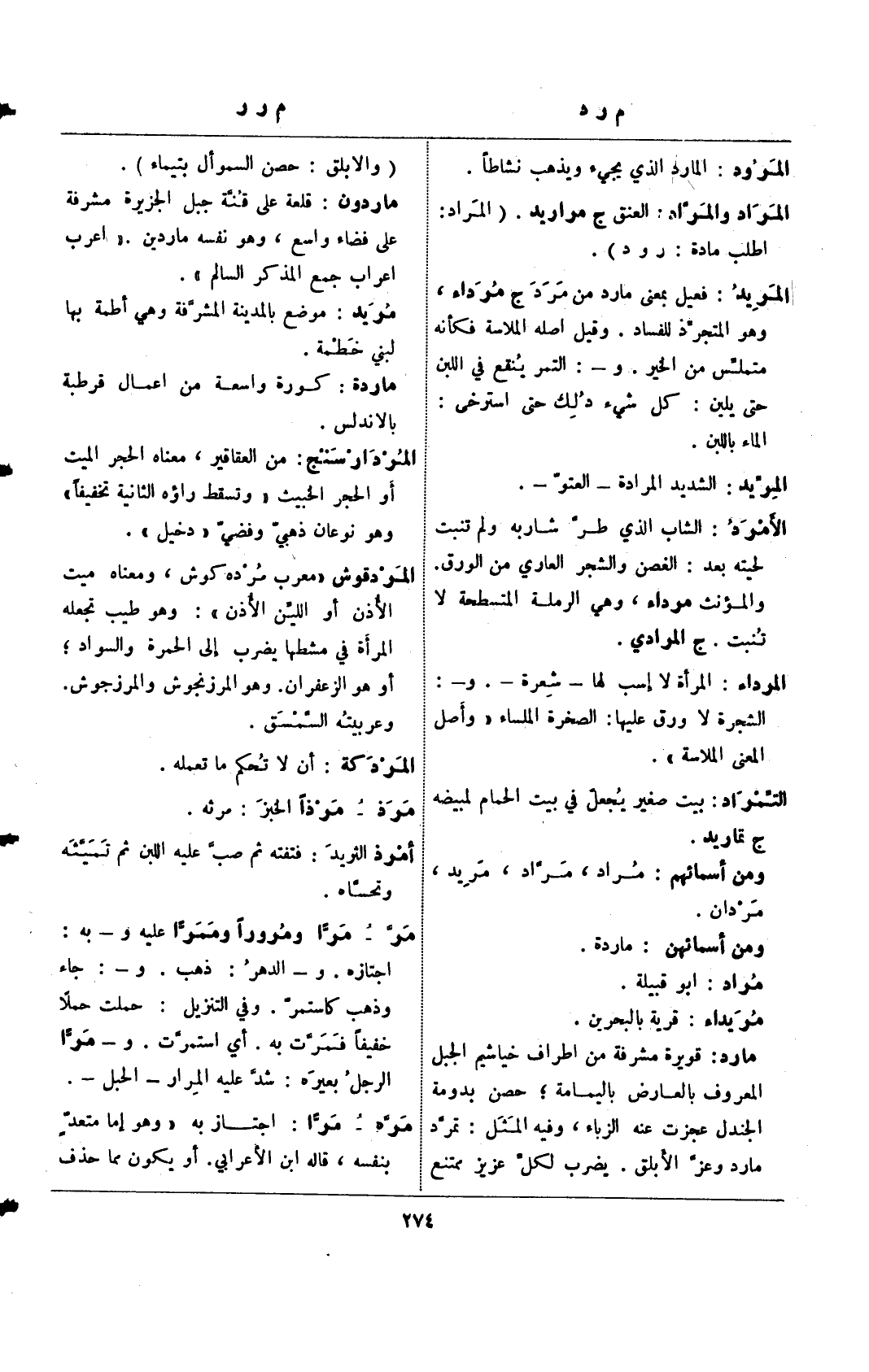 المراد والمراد: العنق ج مراريد. (المراد: اطلب مادة: ر ود".