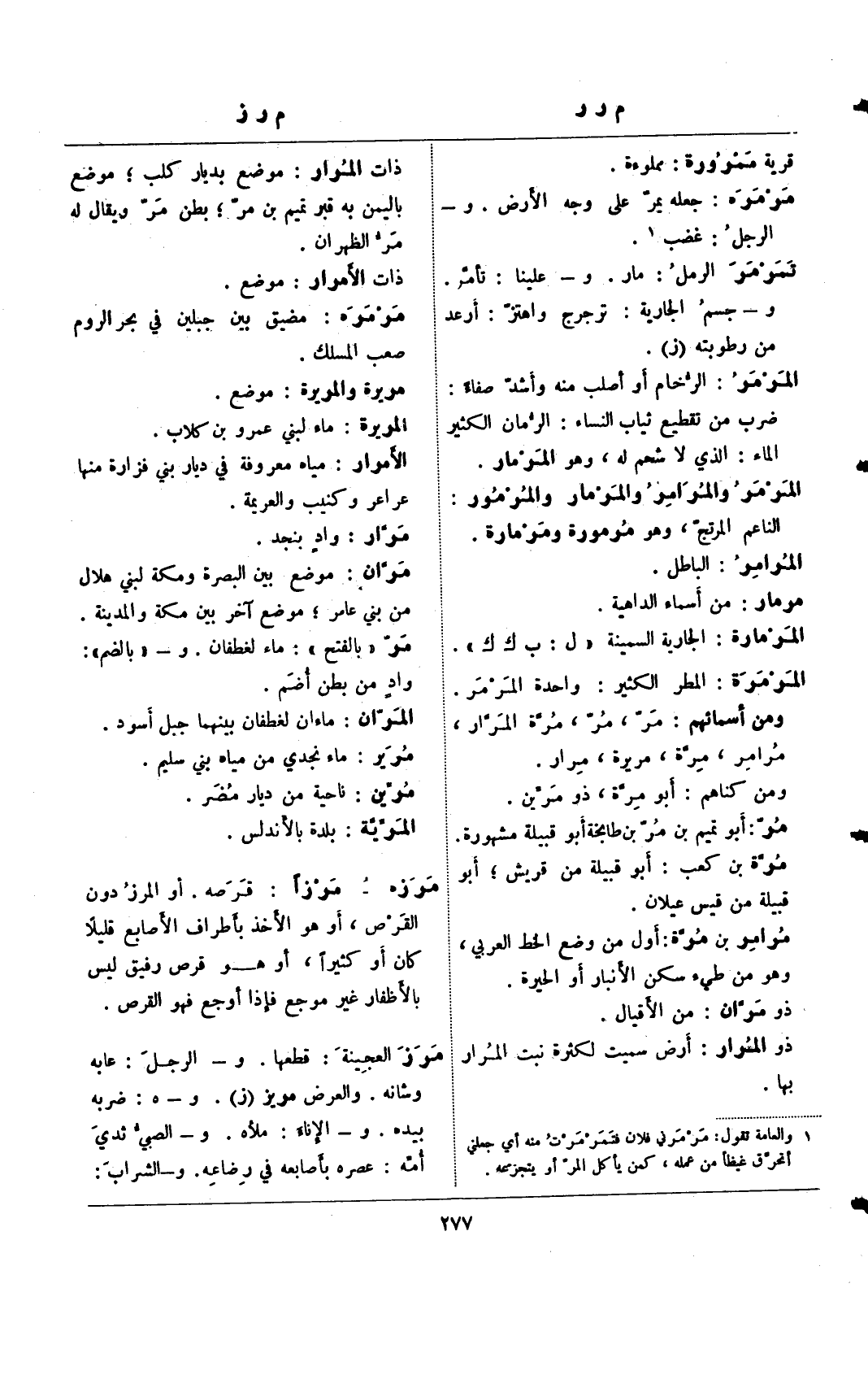 مر "بالفتح": ماء لغطفان. و-"بالضم": واد من بطن أضم.