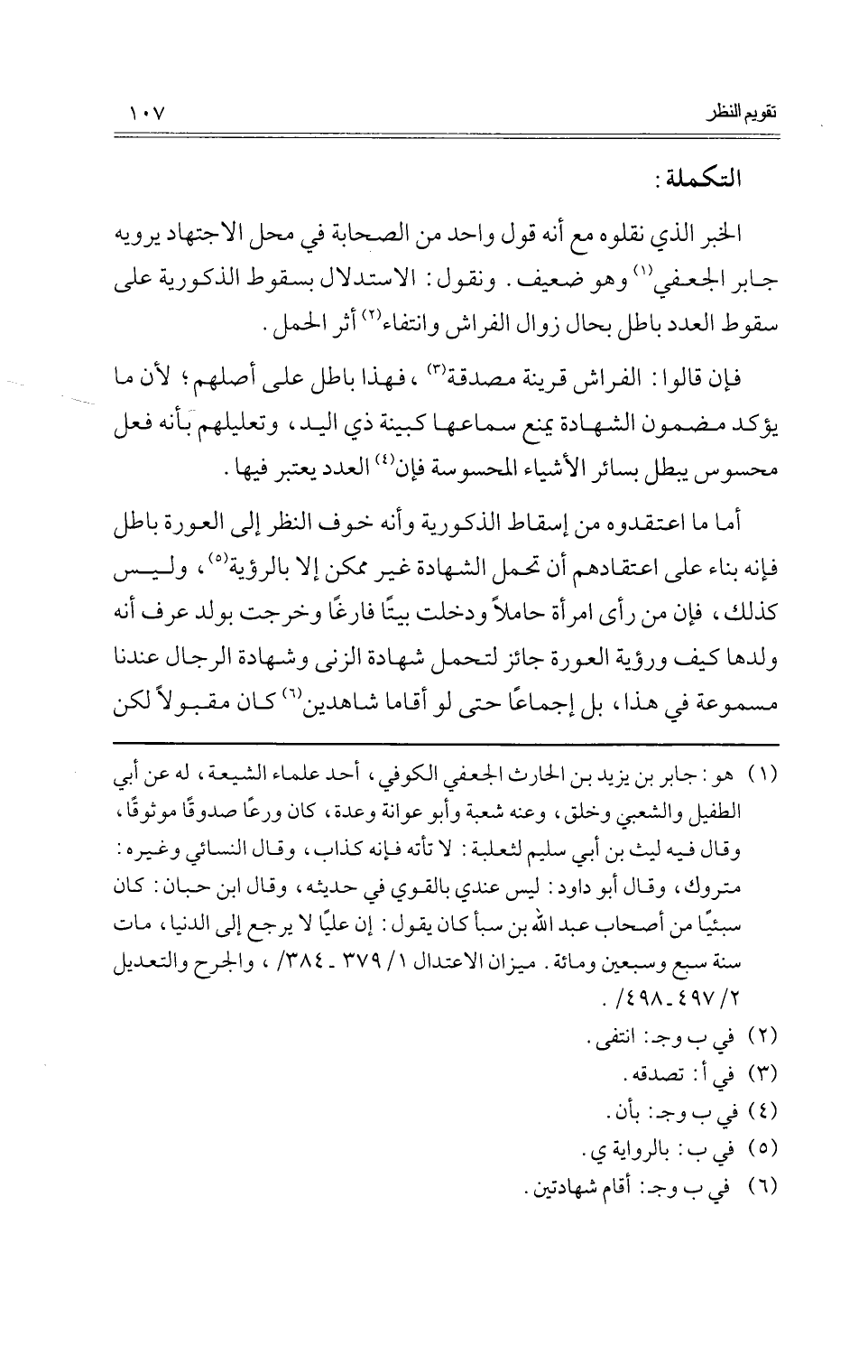 الْخَبَر الَّذِي نقلوه مَعَ أَنه قَول وَاحِد من الصَّحَابَة فِي مَحل الِاجْتِهَاد يرويهِ جَابر الْجعْفِيّ وَهُوَ ضَعِيف. ونقول: الِاسْتِدْلَال بِسُقُوط الذكورية على سُقُوط الْعدَد بَاطِل بِحَال زَوَال الْفراش وَانْتِفَاء أثر الْحمل.