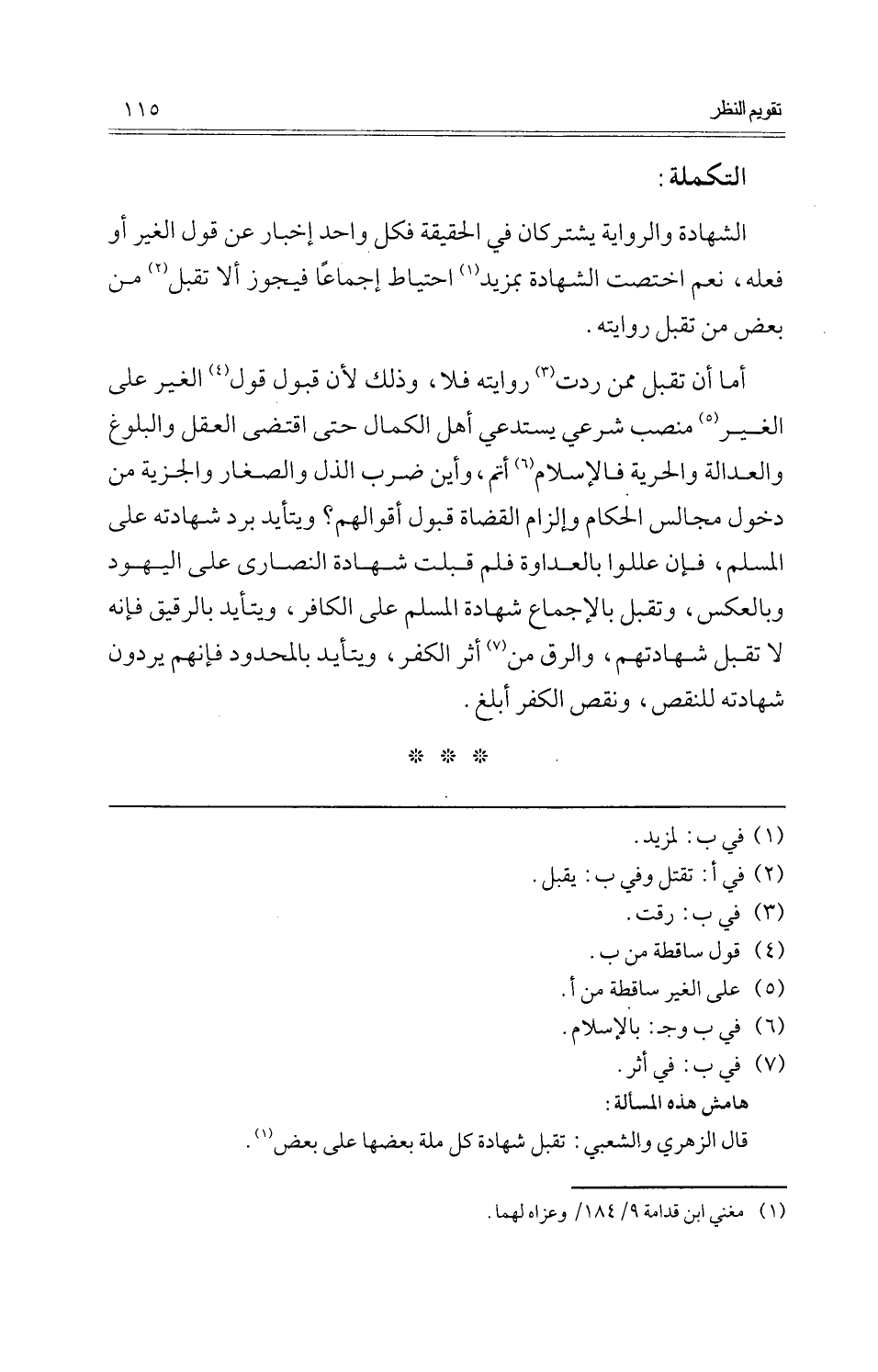 كتاب تقويم النظر في مسائل خلافية ذائعة (اسم الجزء: 5)