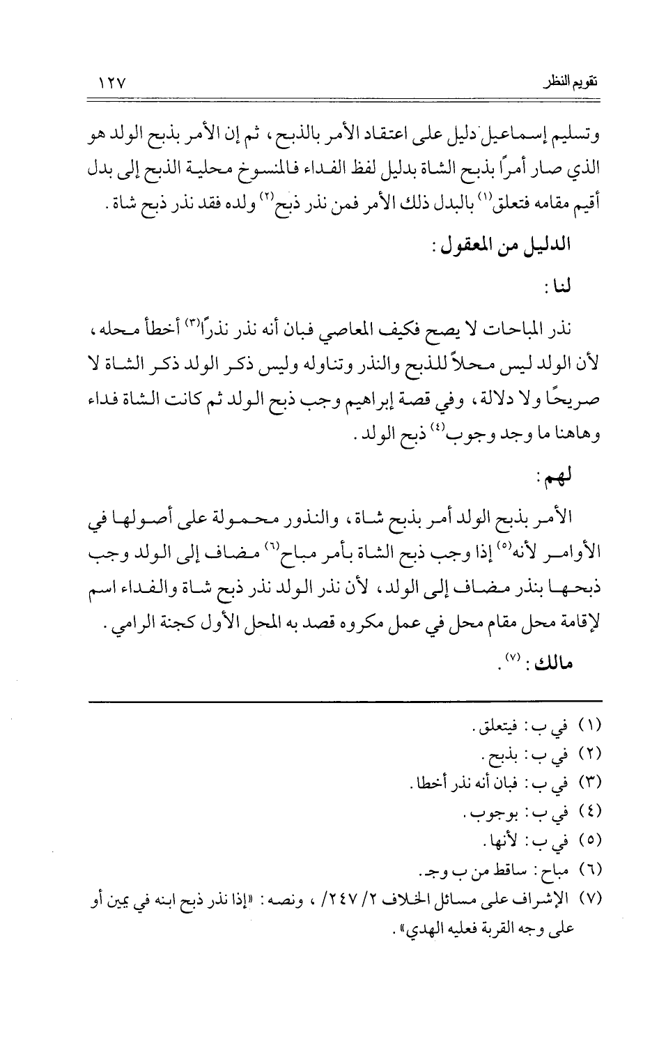كتاب تقويم النظر في مسائل خلافية ذائعة (اسم الجزء: 5)