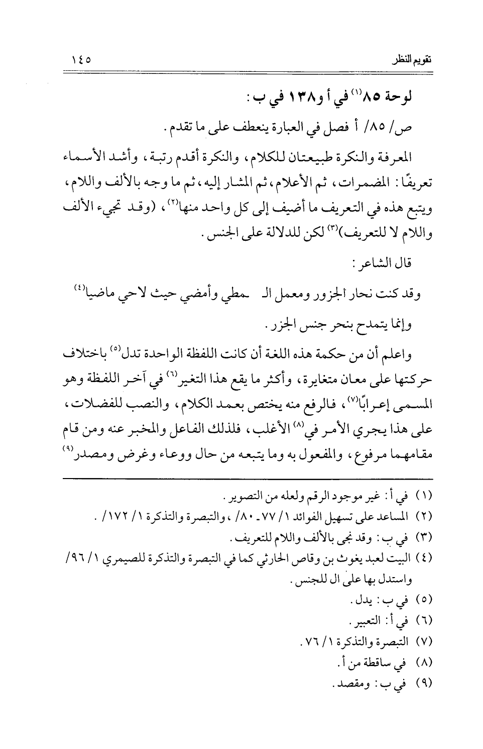 ص / 85 / أفصل فِي الْعبارَة يَنْعَطِف على مَا تقدم.