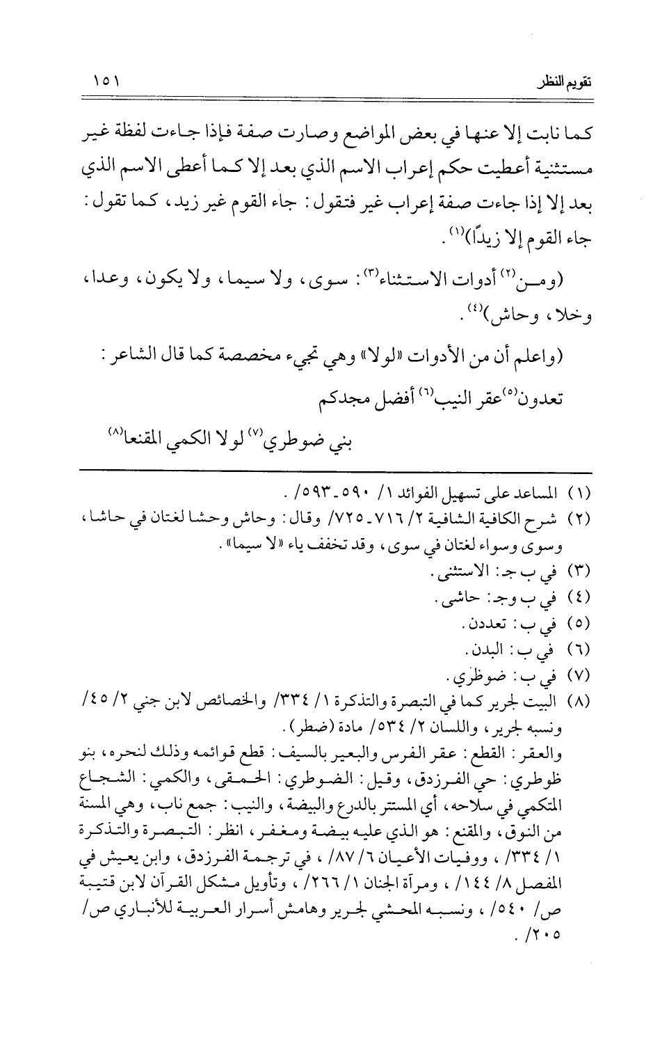 (وَاعْلَم أَن من الأدوات " لَوْلَا " وَهِي تَجِيء مخصصة كَمَا قَالَ الشَّاعِر: