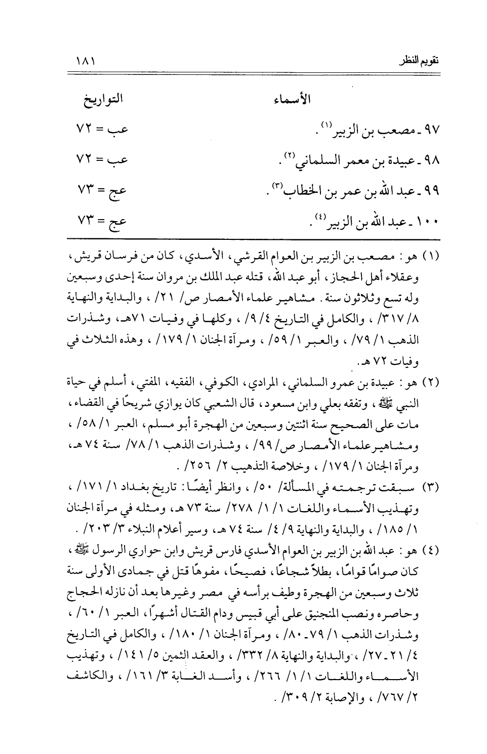 99 - عبد اللَّهِ بن عمر بن الْخطاب.، عج = 73 100 - عبد اللَّهِ بن الزبير.، عج = 73