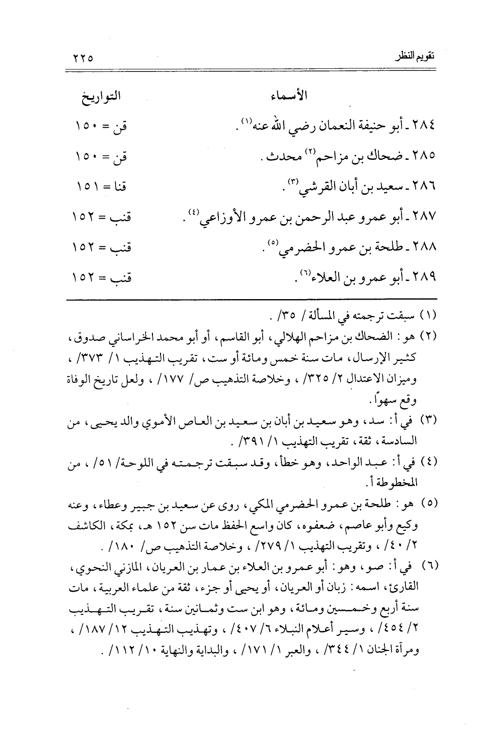 287 - أَبُو عَمْرو عبد الرَّحْمَن بن عَمْرو الْأَوْزَاعِيّ.، قنب = 152