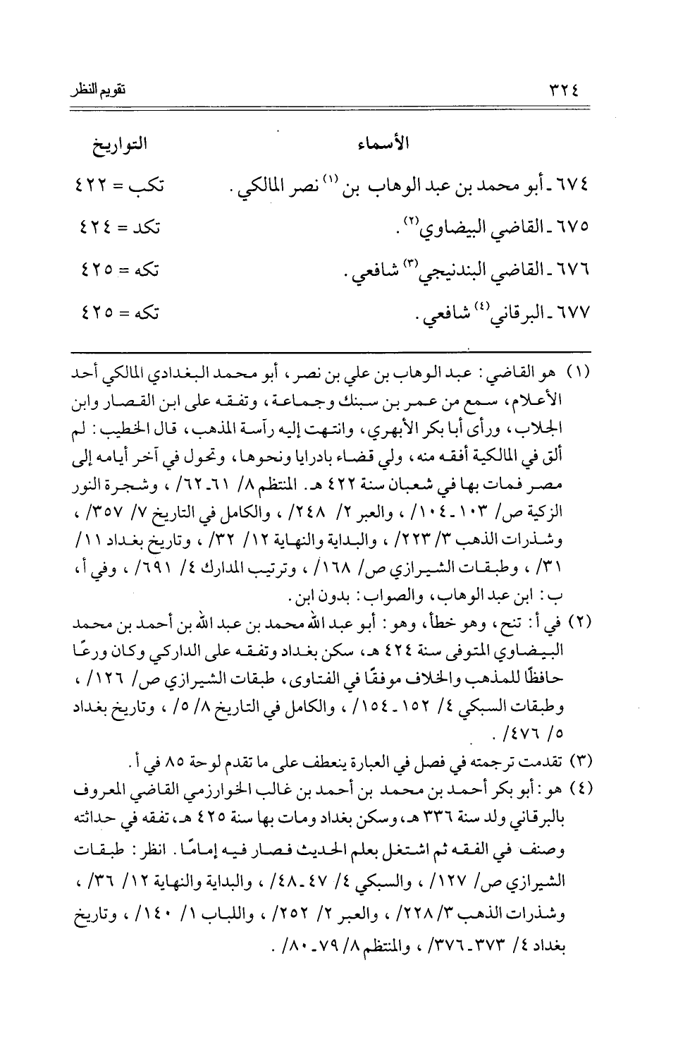 674 - أَبُو مُحَمَّد بن عبد الْوَهَّاب بن نصر الْمَالِكِي.، تكب = 422