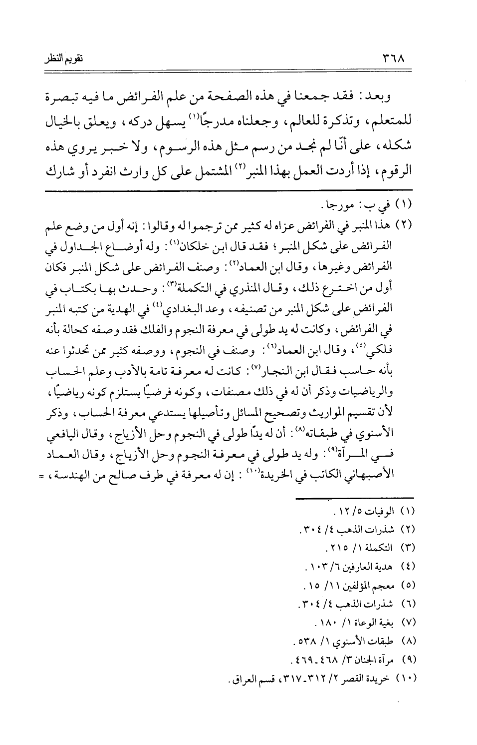 وَبعد: فقد جَمعنَا فِي هَذِه الصفحة من علم الْفَرَائِض مَا فِيهِ تبصرة للمتعلم، وَتَذْكِرَة للْعَالم، وجعلناه مدرجا يسهل دركه، ويعلق بالخيال شكله، على أَنا لم نجد من رسم مثل هَذِه الرسوم، وَلَا خبر يروي هَذِه الرقوم، إِذا أردْت الْعَمَل بِهَذَا الْمِنْبَر الْمُشْتَمل على كل وَارِث انْفَرد أَو شَارك