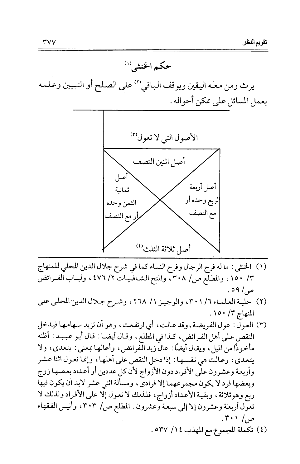 1 -. أصل اثْنَيْنِ النّصْف. 2. أصل أَرْبَعَة لربع وَحده أَو مَعَ النّصْف. 3. أصل ثَمَانِيَة الثّمن وَحده أَو مَعَ النّصْف. 4. أصل ثَلَاثَة الثُّلُث.