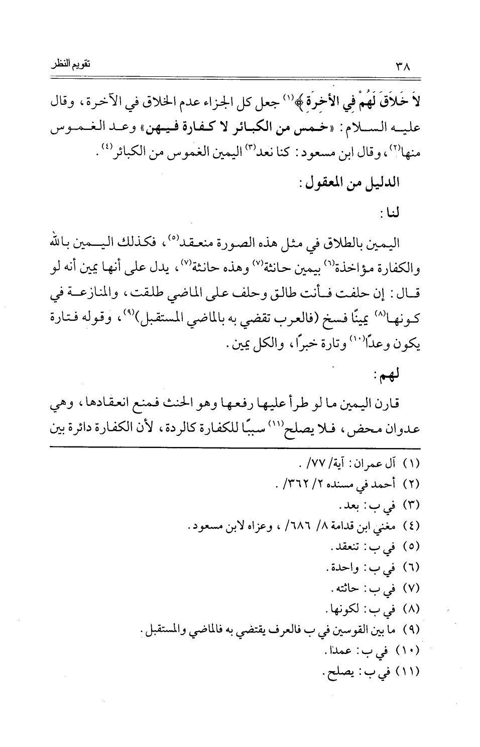 الْيَمين بِالطَّلَاق فِي مثل هَذِه الصُّورَة مُنْعَقد، فَكَذَلِك الْيَمين بِاللَّه وَالْكَفَّارَة مُؤَاخذَة بِيَمِين حانثة وَهَذِه حانثة، يدل على أَنَّهَا يَمِين أَنه لَو قَالَ: إِن حَلَفت فَأَنت طَالِق وَحلف على الْمَاضِي طلقت، والمنازعة فِي كَونهَا يَمِينا فسخ (فالعرب تقضي بِهِ بالماضي الْمُسْتَقْبل) ، وَقَوله فَتَارَة يكون وَعدا وَتارَة خَبرا، وَالْكل يَمِين.