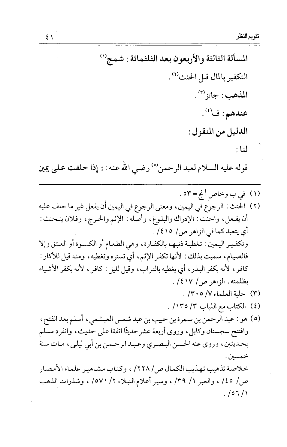 قَوْله عَلَيْهِ السَّلَام لعبد الرَّحْمَن رَضِي اللَّهِ عَنهُ: " إِذا حَلَفت على يَمِين