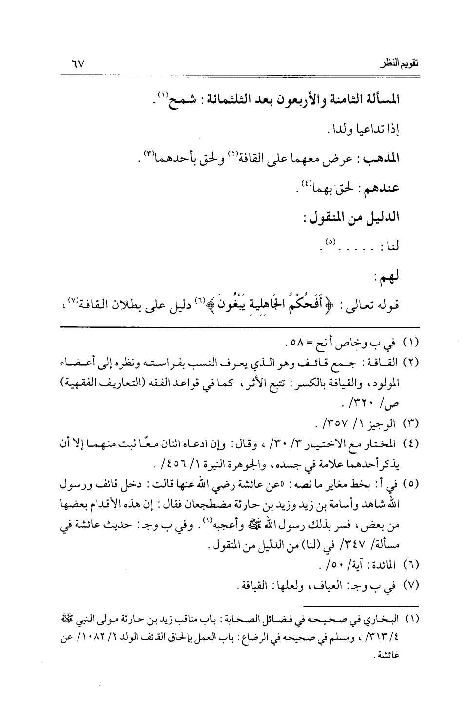 قَوْله تَعَالَى: {أَفَحكم الْجَاهِلِيَّة يَبْغُونَ} دَلِيل على بطلَان الْقَافة،