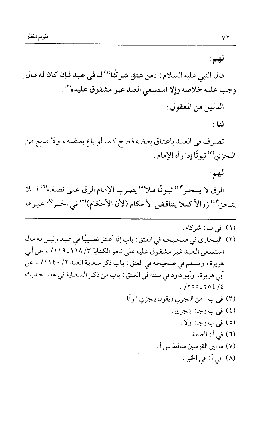 كتاب تقويم النظر في مسائل خلافية ذائعة (اسم الجزء: 5)
