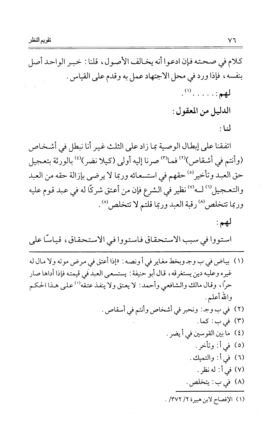 كتاب تقويم النظر في مسائل خلافية ذائعة (اسم الجزء: 5)