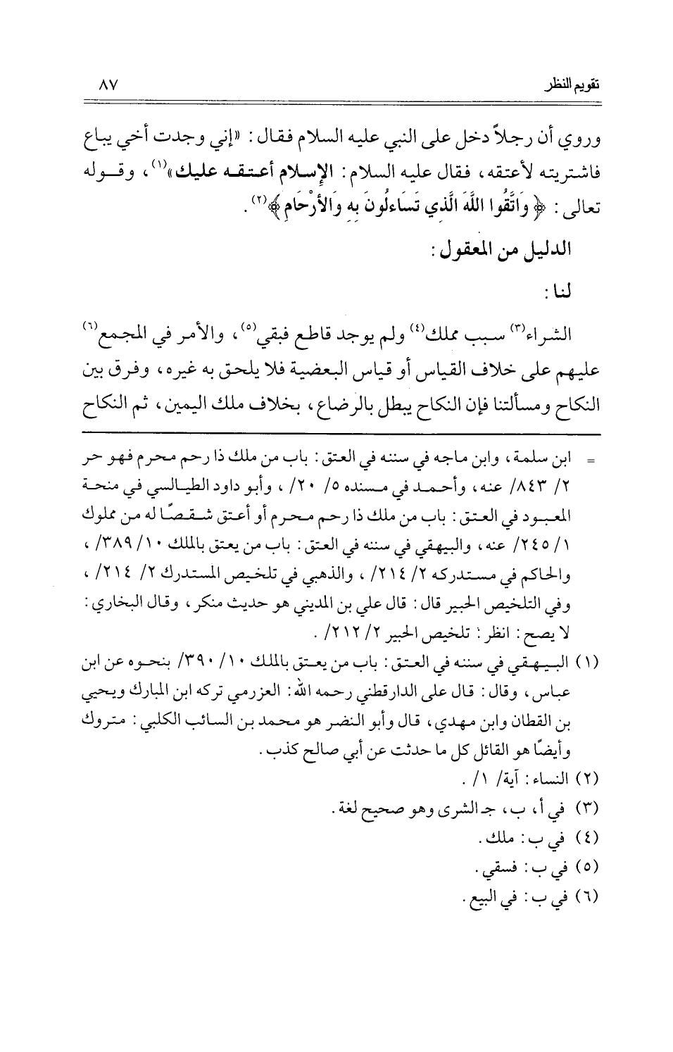 كتاب تقويم النظر في مسائل خلافية ذائعة (اسم الجزء: 5)