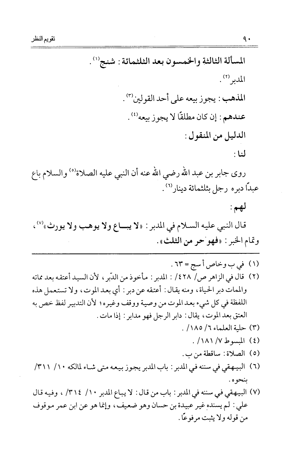 روى جَابر بن عبد اللَّهِ رَضِي اللَّهِ عَنهُ أَن النَّبِي عَلَيْهِ الصَّلَاة وَالسَّلَام بَاعَ عبدا دبره رجل بثلثمائة دِينَار.