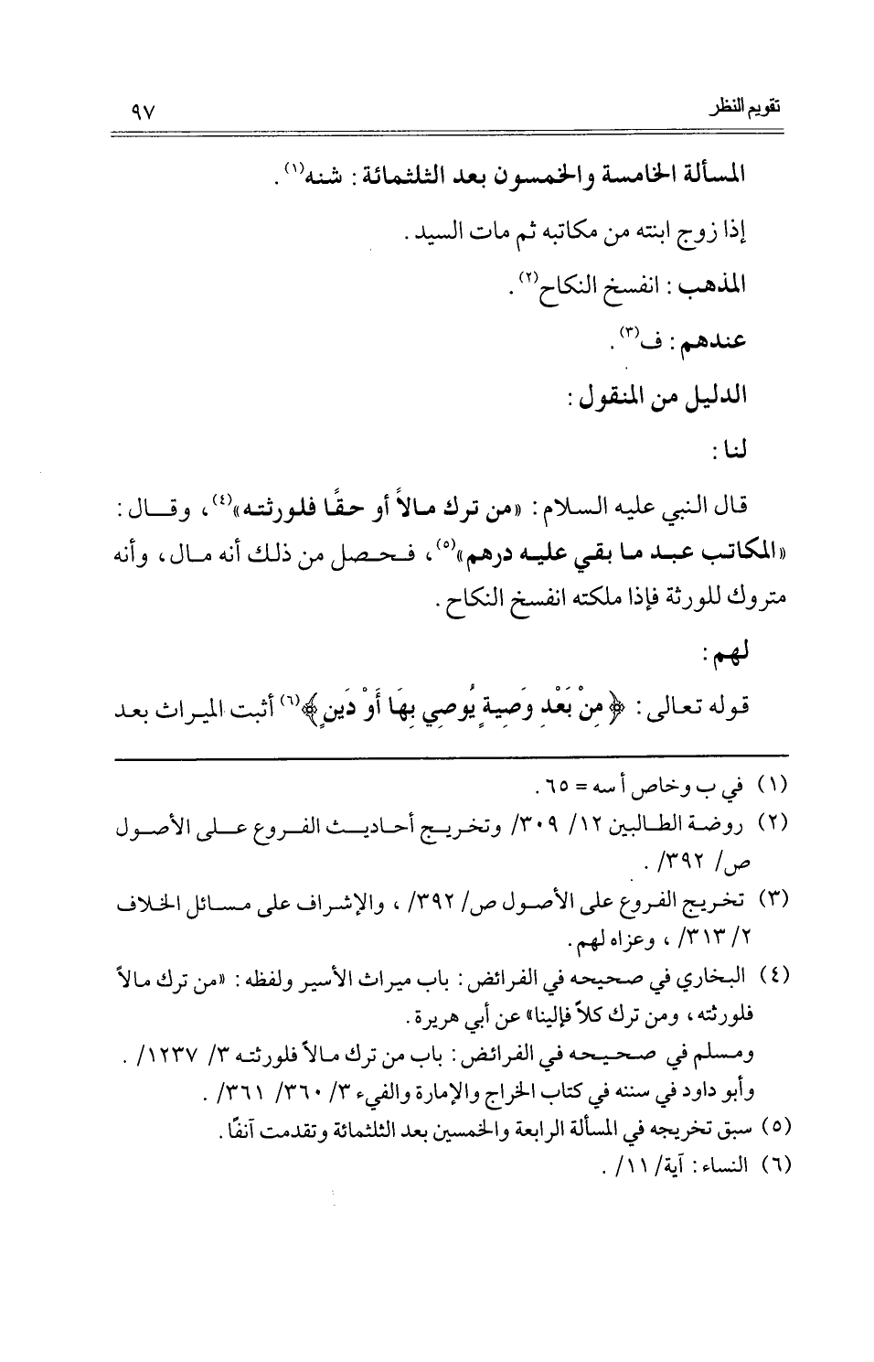 (الْمَسْأَلَة الْخَامِسَة وَالْخَمْسُونَ بعد الثلثمائة: شنه)