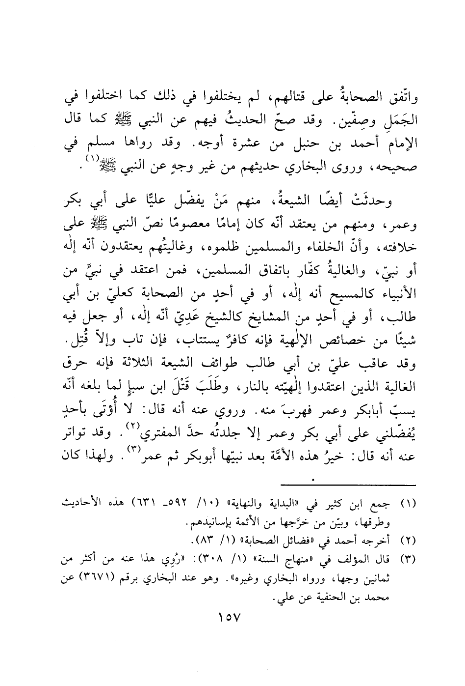 (3) قال المؤلف في "منهاج السنة" (1/ 308): "رُوِي هذا عنه من أكثر من ثمانين وجها، ورواه البخاري وغيره". وهو عند البخاري برقم (3671) عن محمد بن الحنفية عن علي.