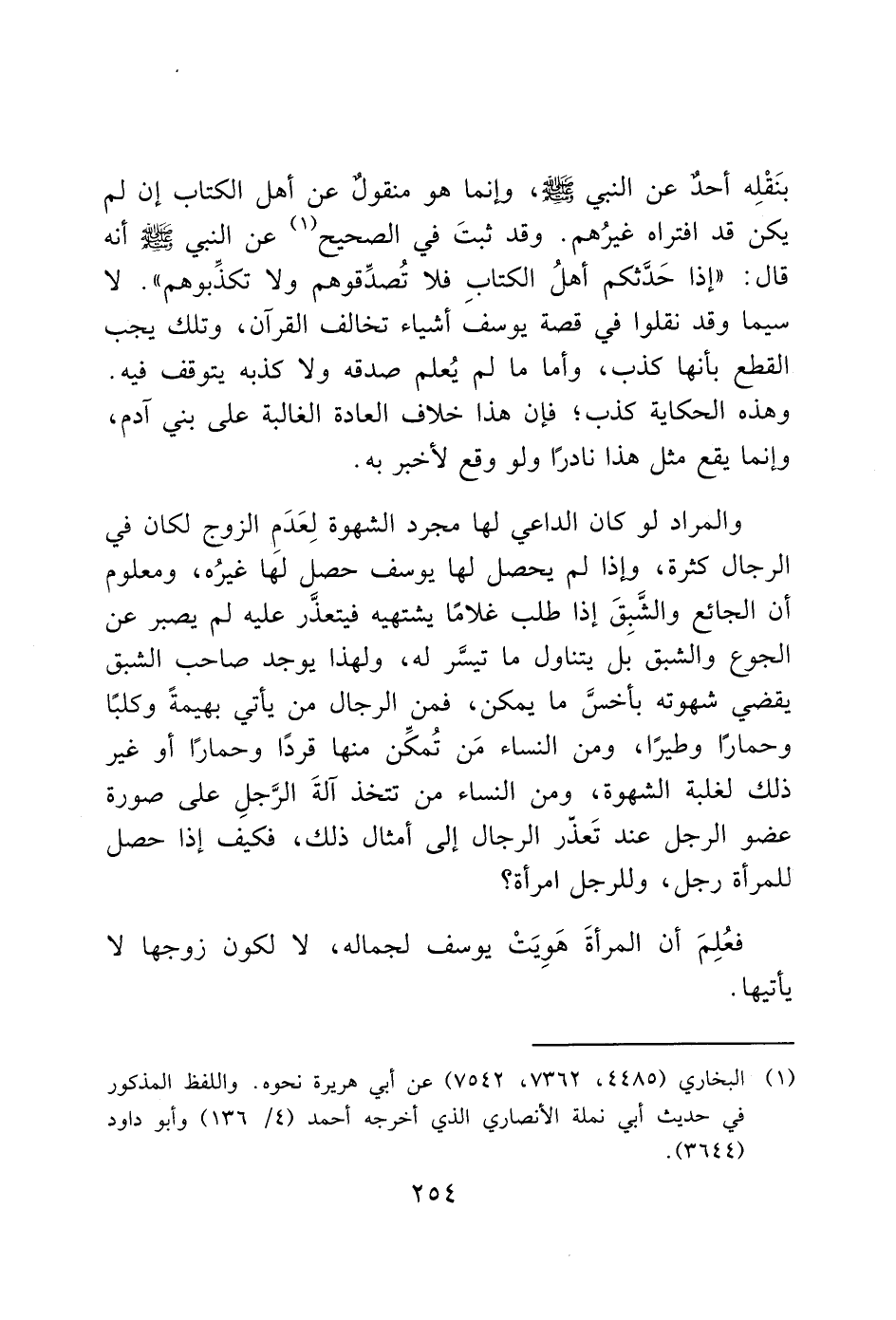 فعُلِمَ أن المرأةَ هَوِيَتْ يوسف لجماله، لا لكون زوجها لا يأتيها.