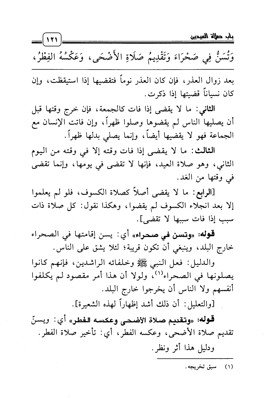 قوله: «وتقديم صلاة الأضحى وعكسه الفطر» أي: ويسنّ تقديم صلاة الأضحى، وعكسه الفطر، أي: تأخير صلاة الفطر.